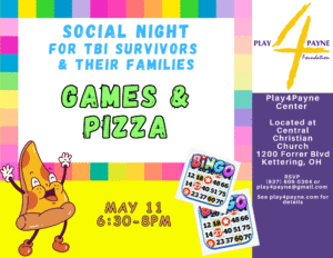 Monday, May 11, 2026 6:30 PM – 8:00 PM–Dinner and Bingo for brain injury survivors and their families. Come join us to connect and have fun in a safe and supportive environment! RSVP by calling Mark at (937) 609-0304 or email us at play4payne@gmail.com. See flyer below for details.