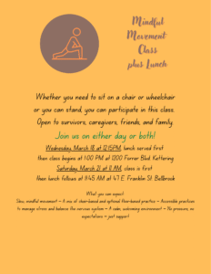 Monday, February 23, 2025 6:30 PM – 7:30 PM–Support Groups for survivors and caregivers. Both groups meet at the same time, but in different spaces. 1200 Forrer Blvd. Kettering, OH